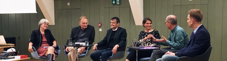 Podiumsteilnehmende diskutieren