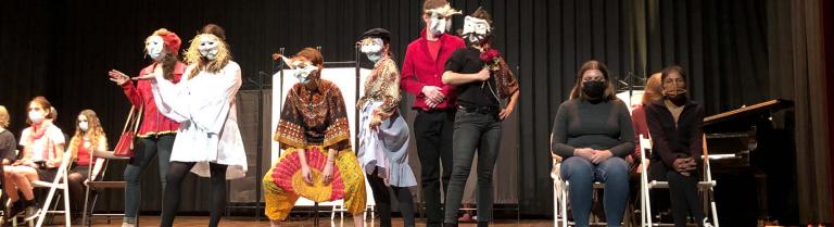 Studierende des Freifachs Theater an der Hauptprobe auf der Bühne