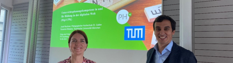 Josef Buchner und Susanne Miesera stellten erste Ergebnisse des Projekts «Unterrichtsplanungskompetenz für Bildung in der digitalen Welt» wurden im Rahmen der Tagung «Wege der Professionalisierung – Wie viel Wissenschaft braucht die Lehrkräftefortbildung?» an der PH Vorarlberg sowie auf dem Jahreskongress der Schweizerischen Gesellschaft für Bildungsforschung an der PH Zürich vor.