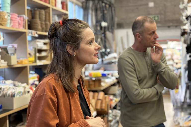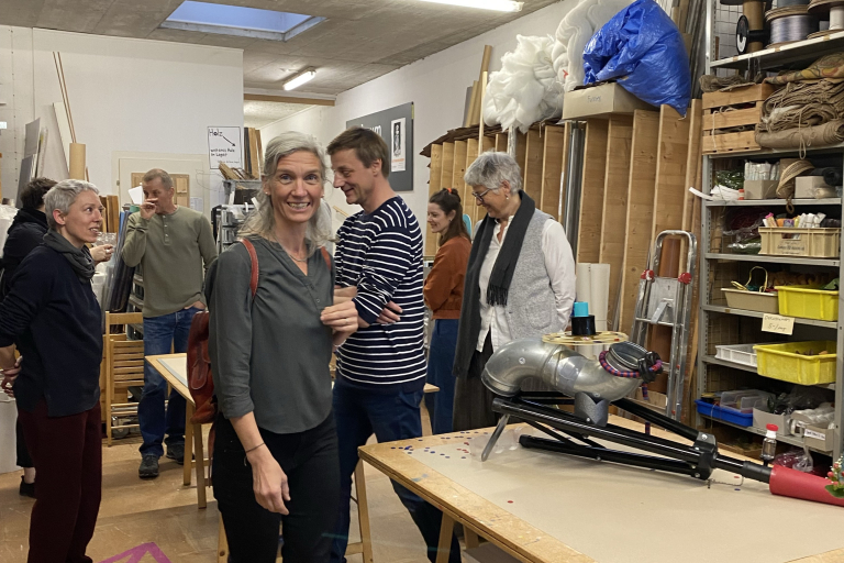 Denise Hofer und Rahel Flückiger vom Materialmarkt OFFCUT gaben Einblick in das Projekt an der Ulmenstrasse 5, wo sich neben dem OFFCUT die öffentliche Werkstatt des Vereins meter, das Atelier vielraum, das RepairCafé und AnGelati befinden.