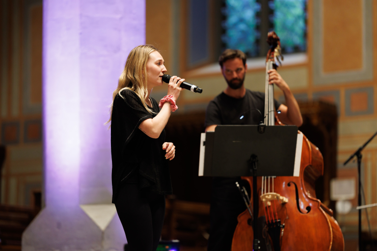 Ein Chor begleitet eine Solo-Sängerin