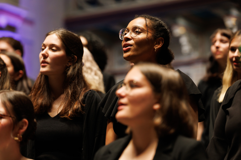 Ein Chor singt vor Publikum